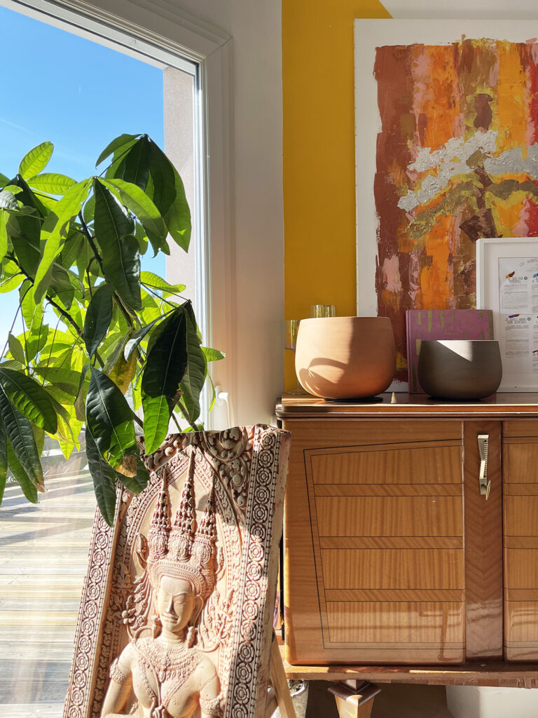 Amoureuse des beaux objets, (notamment de l’artisanat étranger, des savoirs-faires de qualité, ingénieux parfois et originaux), sensible à la couleur, j’aime aussi prêter attention aux matières. La terre me touche particulièrement : raku, céramique, grès, argile divers… j’apprécie aussi beaucoup, la belle vaisselle et tout autant la bonne cuisine ! Les vieux meubles me parlent et ils me plaisent retapés ou pas enfin, …avec une âme. Le jeu et mélange moderne/tradi me plait – Pour les assises, elles me branchent plutôt modernes et confortables avec un design rétro ou pas…